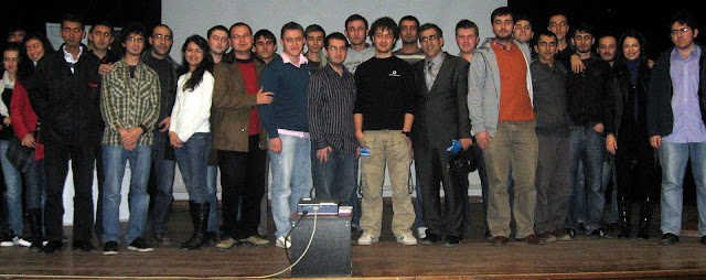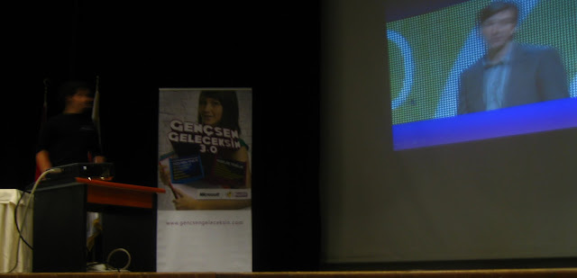 Ertesi gün Çanakkale 18 Mart Üniversitesi’ndeydik. Yaklaşık 130 kişilik bir topluluğa konuşma yaptık. Turkcell adına Erhan TATLICI mobildeki yeniliklerden bahsetti. Microsoft adına da İlkay ve ben sunumlarımızı yaptık. Sahne üzerindeki 45 dklık sunumum resimde de belli olduğu üzere gayet hızlı geçti :))