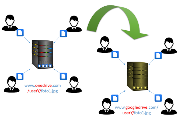 Örnek olarak fotoğraflarınızı internete yüklemek istediğinizi varsayalım. Fotoğraflarınızı Microsoft’un One Drive servisine yüklediğinizi düşünün, örneğin www.onedrive.com/userY/foto1.jpg gibi bir adrese sahip oldunuz. Yarın bunun yerine fotoğraflarınızı yüklemek için Google’ın Drive servislerini kullanmaya karar verirseniz yaşanacak olan eski adresiniz yerine www.googledrive.com/userX/foto1.jpg gibi bir adresiniz olacak.