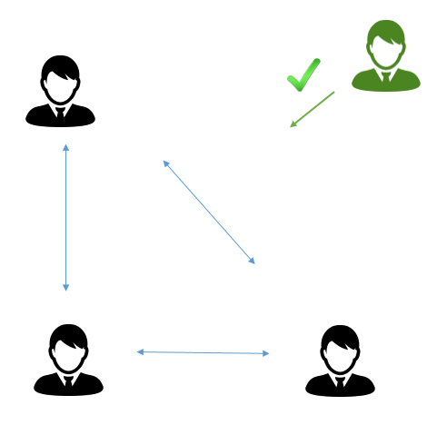 Artık 4 katılımcılı bir blockchain ağımız mevcut olduğunu düşünelim. Projenin teslim süresi yaklaşıyor ve harıl harıl herkes çalışıyor. Herhangi bir kişi bir block oluşturabiliyor ve bu blockun mutabakatına dahil olabiliyorsa bu örneğe permissionless blockchain ismi verilir. Bu tarz blockchainlerde mutabakat sistemine katılabilmek, block oluşturabilmek için özel bir yetkiye gerek yoktur, bu sürece herkes doğrudan katılabilir. Bitcoin permissionless bir blockchain örneğidir.