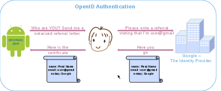 Kullanıcı bir foruma üye olmak istediğinde OpenID kimliğiyle üye olacaktı. Kullanıcı sonraki her login isteğinde siteye OpenID ile login olmak istediğini söyleyecek, site kullanıcıyı OpenID’ye yönlendirip oradan doğruladığı kimliğiyle geçerli bir sertifika aracılığıyla tekrar kendisine gelmesini isteyecekti. Böylelikle kullanıcı adı/şifresi kaosu artık yaşanmayacaktı. OpenID bir Federated Authentication örneğidir.