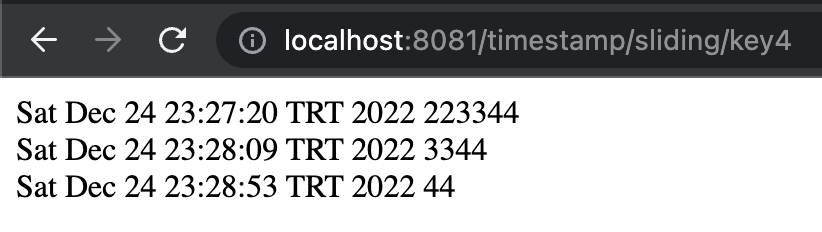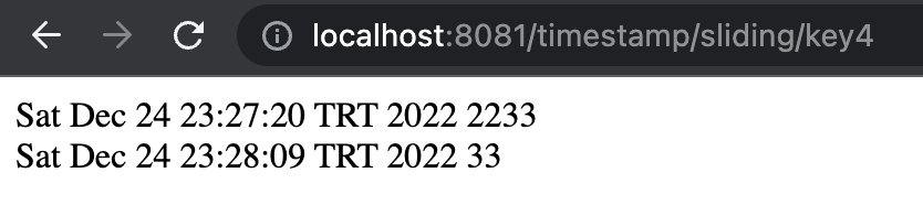 49 geçe ilk recordu gönderdiğimizde ise storedaki keyin değeri reducerın çıktısı olan 3344 olarak güncellendi ama ilk windowun süresi uzamadı.