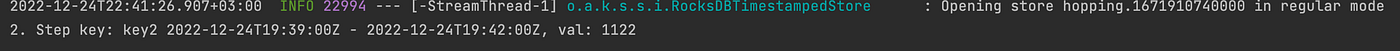 .peek((key, val) -> System.out.println("2. Step key: " + key.key() + " "