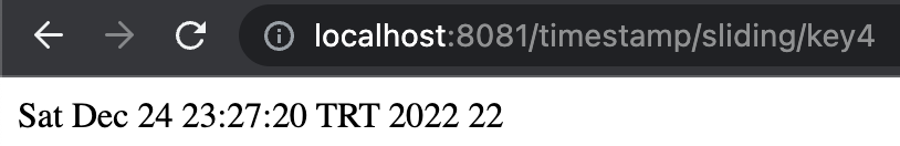Peki biz tumblingWindow ile bu fonksiyonu değiştirdiğimizde neler oldu? WindowSize olarak ilettiğimiz değer kaydın ne kadar süreyle geçerli olacağı bilgisi. Yani bu 1122 değeri emit edildikten sonra 3 dakikalık zaman aralığı için geçerli olacak. Kaydı store’dan sorgulamak için bir Rest Controller yazalım.